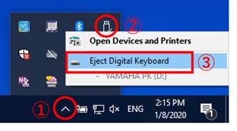 • To remove the instrument (external storage drive), follow the procedures in this booklet. Failing to do this may result in damage to the file.