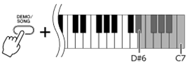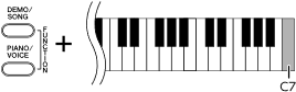 Sambil menekan [DEMO/SONG] dan [PIANO/VOICE] secara bersamaan, tekan tuts C7.
