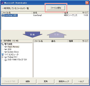 ミュージックソフトダウンローダーを使ってファイル転送する