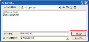 5. ファイル選択画面上で楽器へコピーしたいファイルを選択したあと、[開く]をクリックします。