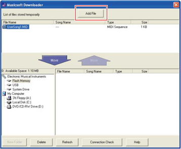 • Jeśli chcesz przenieść utwór (***.MID) lub Styl (***.STY) w pamięci wewnętrznej instrumentu, wybierz „Flash Memory”.