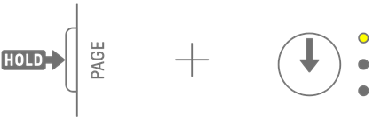 Halten Sie die [PAGE]-Taste gedrückt und drücken Sie den Synth-Track-Drehregler oder den [SAMPLER]-Drehregler, um in den Step-Eingabemodus zu wechseln. Mit dem gleichen Bedienvorgang können Sie den Step-Eingabemodus wieder verlassen.