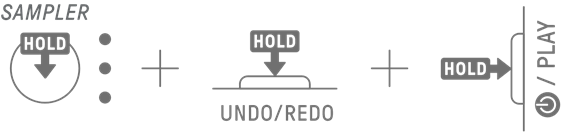 Pour rétablir les réglages et les données de SEQTRAK sur leurs valeurs d'usine par défaut (réinitialisation), maintenez les boutons [SAMPLER] et [UNDO/REDO] enfoncés simultanément et mettez SEQTRAK sous tension.