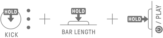 5. Tenere premuta la manopola [KICK] e il pulsante [BAR LENGTH] e accendere SEQTRAK.