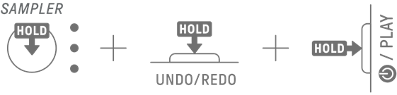 Para restaurar as configurações e os dados do SEQTRAK para os padrões de fábrica (inicialização), mantenha pressionados simultaneamente o botão [SAMPLER] e o botão [UNDO/REDO] e ative o SEQTRAK.