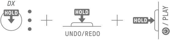 按住[DX]旋钮和[UNDO/REDO]按钮并打开SEQTRAK,对连接的U盘进行格式化。格式化完成后,所有索引均呈白色亮起。格式化完成后,按[