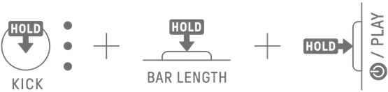 5. 按住[KICK]旋钮和[BAR LENGTH]按钮并打开SEQTRAK。