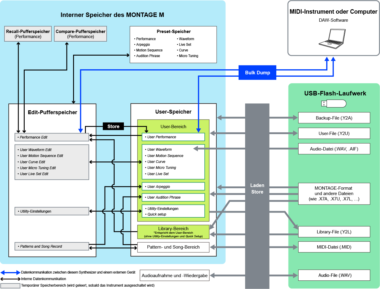 Der interne Speicher dieses Instruments enthält die gespeicherten Performances, Live-Sets und Songs sowie andere gespeicherte Einstellungen.
