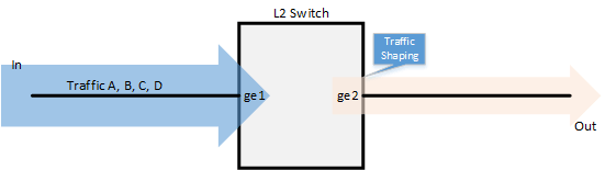 - This sets the shaping for LAN port #2 (ge2). The traffic rate is 30000 kbps, and the burst size is 1280 KB.