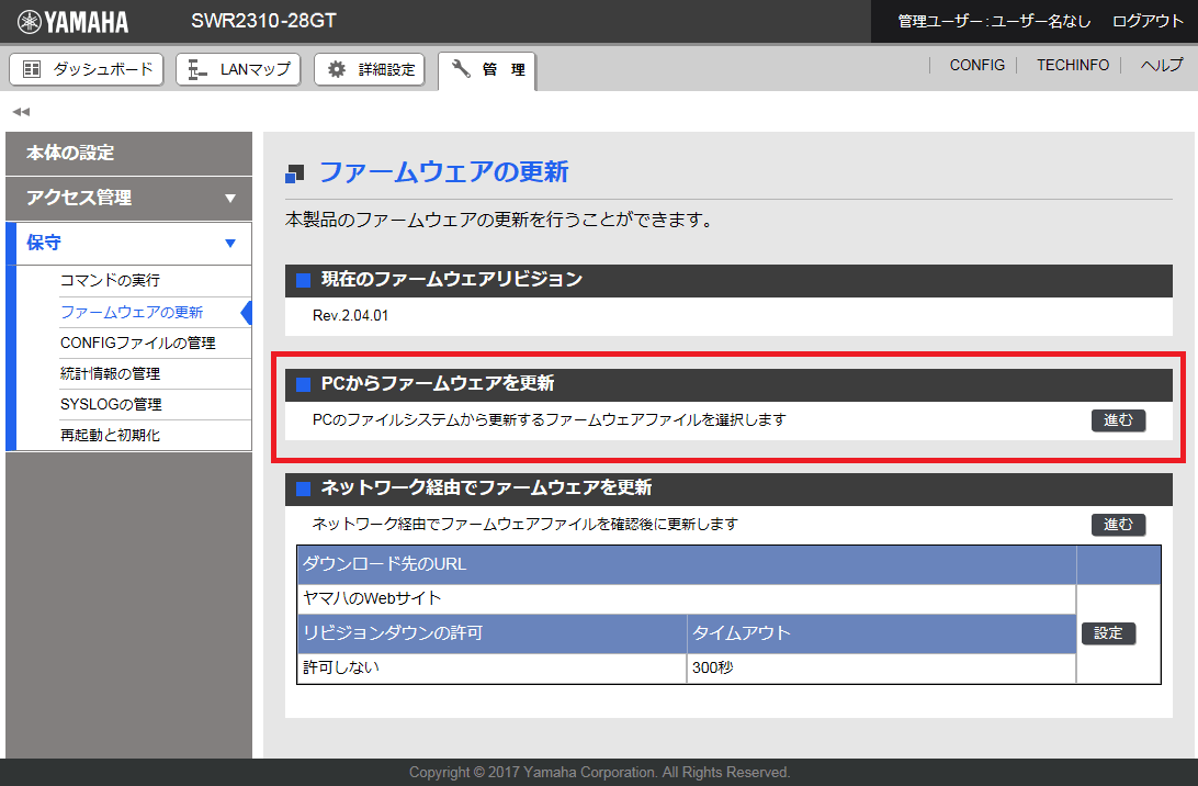 安定した運用をしていただくために、本製品には新機能の追加、不具合対応が行われている最新のファームウェアを適用することをお勧めします。