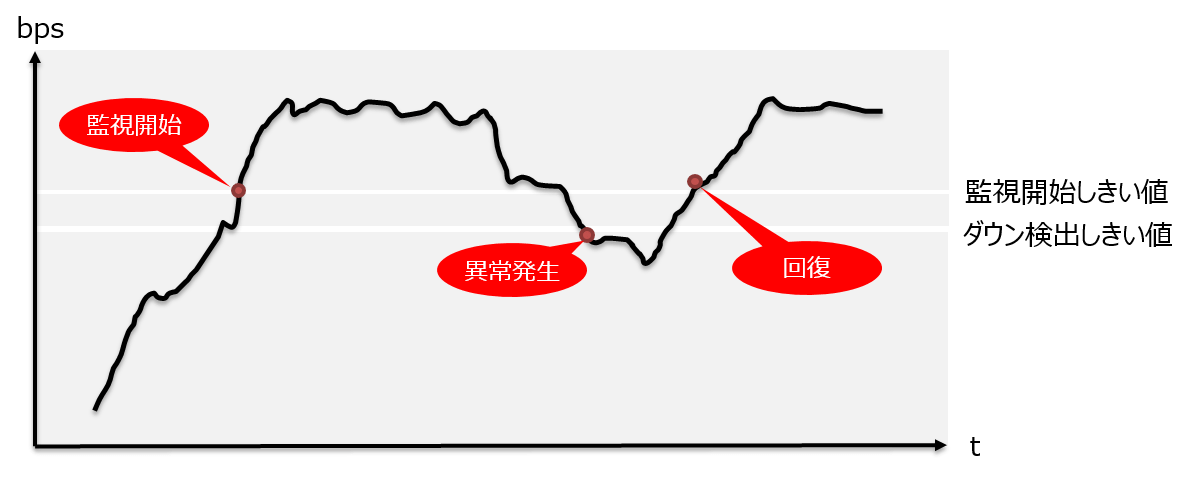 | fallingAlarm | 1.3.6.1.2.1.16.0.2 | alarmIndex alarmVariable alarmSampleType alarmValue alarmFallingThreshold | 下限しきい値を超えたときに通知 |