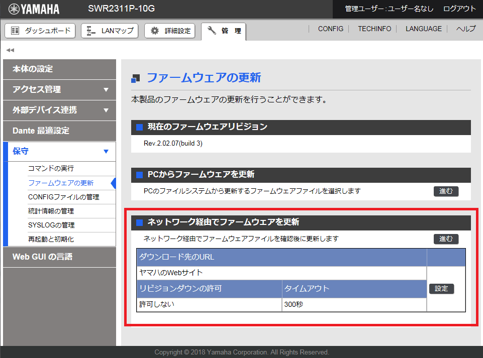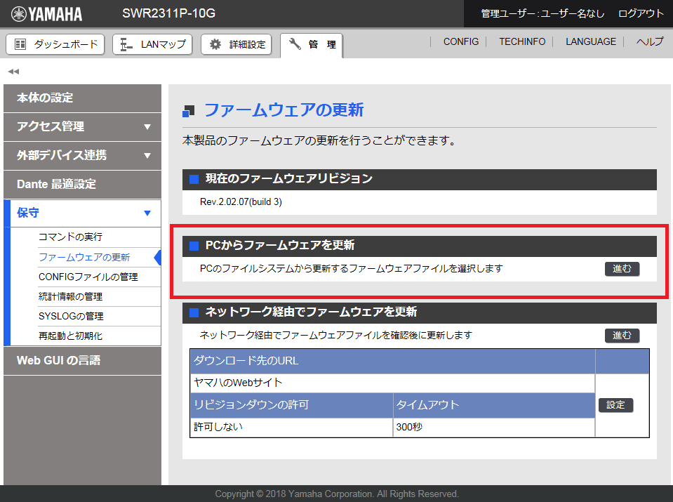 安定した運用をしていただくために、本製品には新機能の追加、不具合対応が行われている最新のファームウェアを適用することをお勧めします。