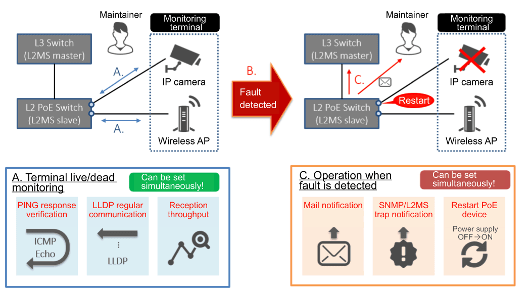 | yspeEnableTrap | 1.3.6.1.4.1.1182.3.10.1 | R/W | INTEGER ・enabled(1) ・disabled(2) | Setting value for determining whether SNMP traps due to PoE information are notified | ||