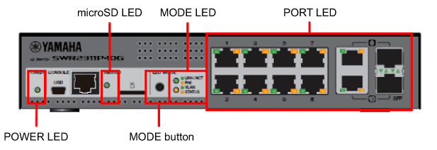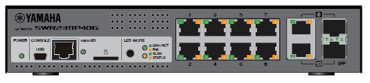 - Do not connect any SFP module to the SFP port other than the separately sold SFP-SWRG-LX or SFP-SWRG-SX. Operation cannot be guaranteed if any other SFP module is connected.
