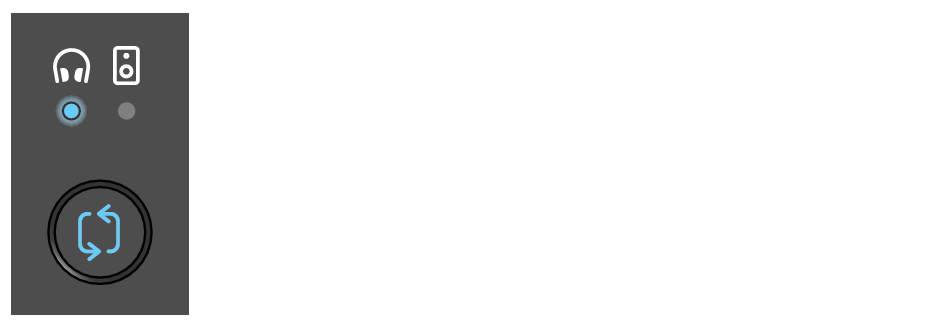 - Press the monitor select [b] button while checking the LED indicator. In this example, we’ve selected the headphones.