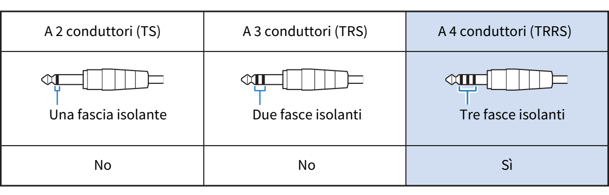 - Usare un cavo mini jack stereo a quattro conduttori (TRRS), non un cavo a due o tre conduttori (TS/TRS).