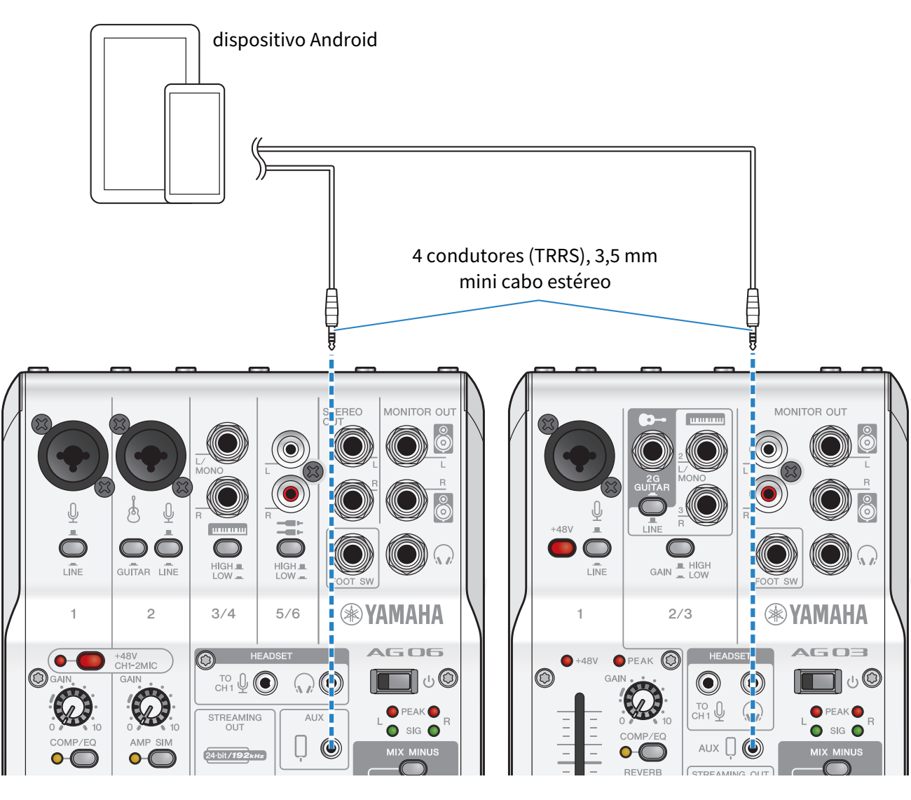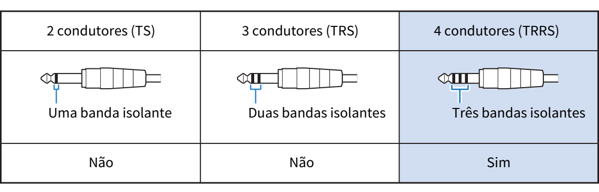 - Use um mini cabo estéreo de quatro condutores (TRRS), não um cabo de dois ou três condutores (TS/TRS).