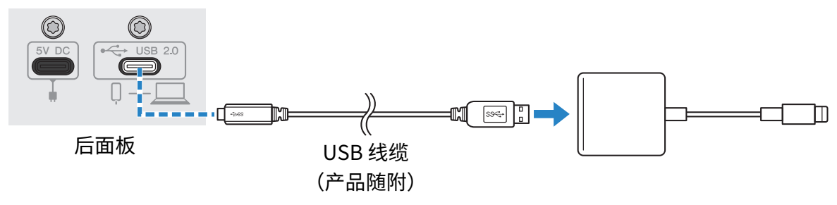 - 将市售 USB 电源适配器、USB 移动电源或类似设备连接至本产品背面的 [5V DC IN](5V 直流输入) USB 接口。
