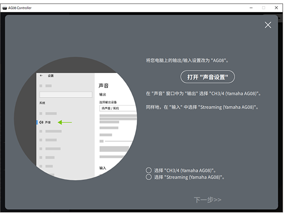 - 如果计算机的输出/输入设置未完成,将显示如下所示的声音设置屏幕。