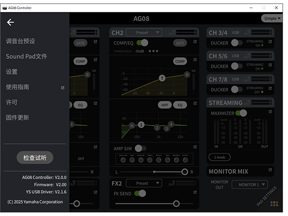 - 按下 AG08 Controller 应用程序上的菜单 [