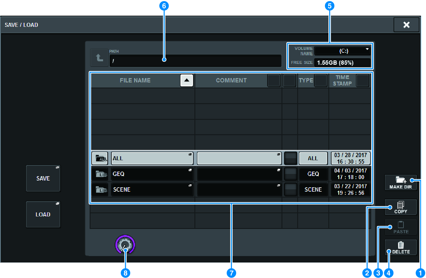 SAVE/LOAD popup window
