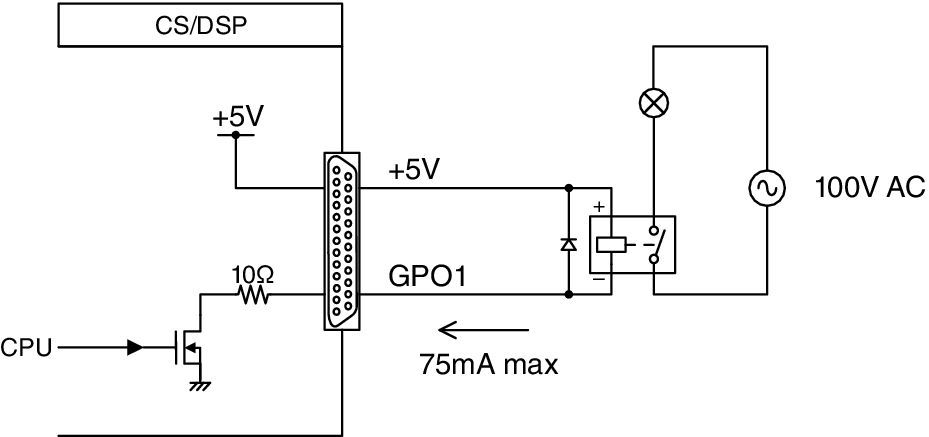 d | Lighting a lamp (100V AC) by switching the relay on an external device via GPI OUT1