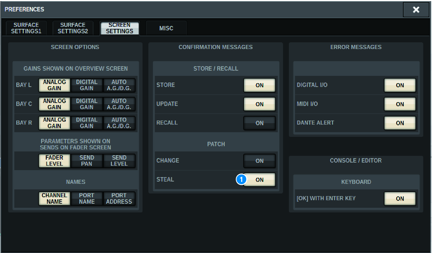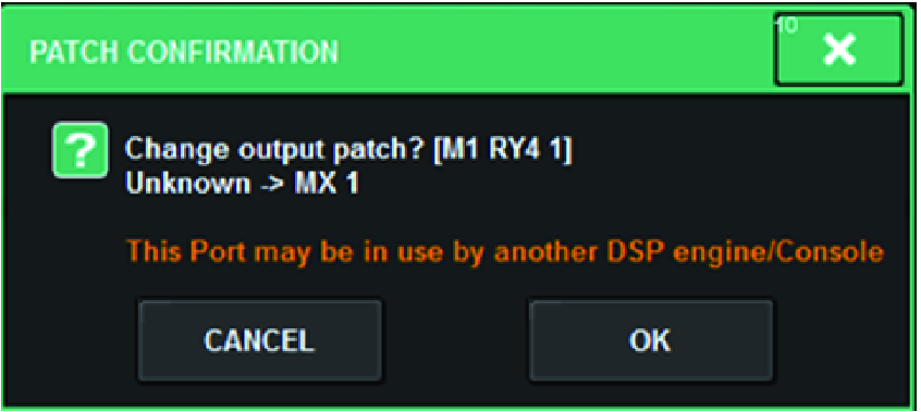 When performing an operation that tries to steal a patch from an output port already patched to another DSP engine on a TWINLANe network, a confirmation message will be displayed on the control surface that initiated the operation, and the control surface from which the patch was stolen now shows that a modification was made.