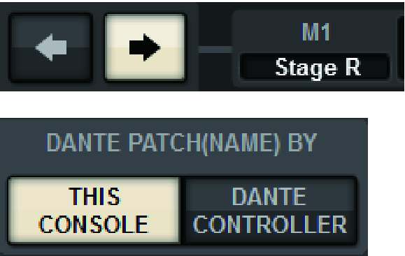 - When a Dante network is selected, this displays the DANTE SETUP popup window. When THIS CONSOLE is on, the label set using the control surface will be enabled, and the label set on the device side will be overwritten. When DANTE CONTROLLER is on, the label set on the device side will be enabled.