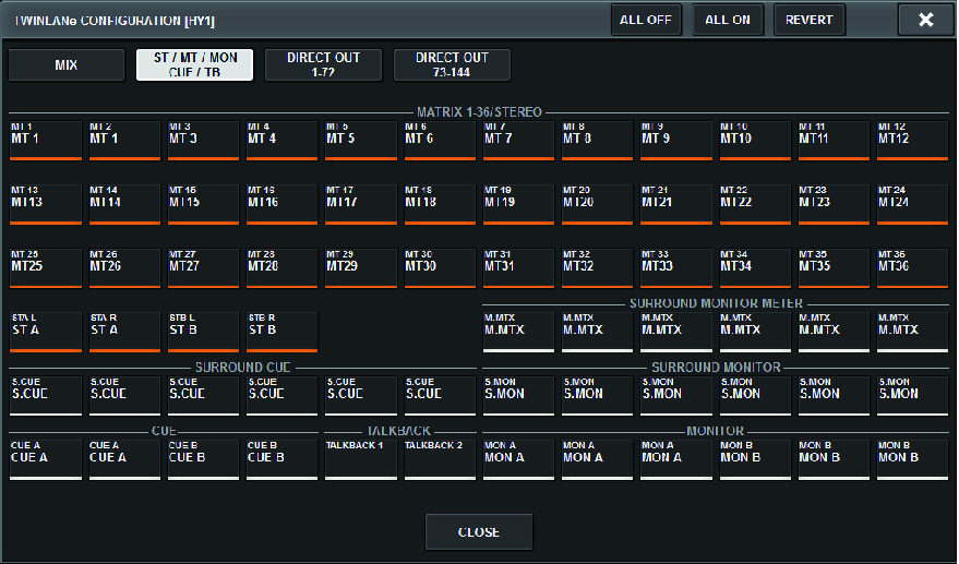 - To close the TWINLANe CONFIGURATION popup window, press the CLOSE button.
