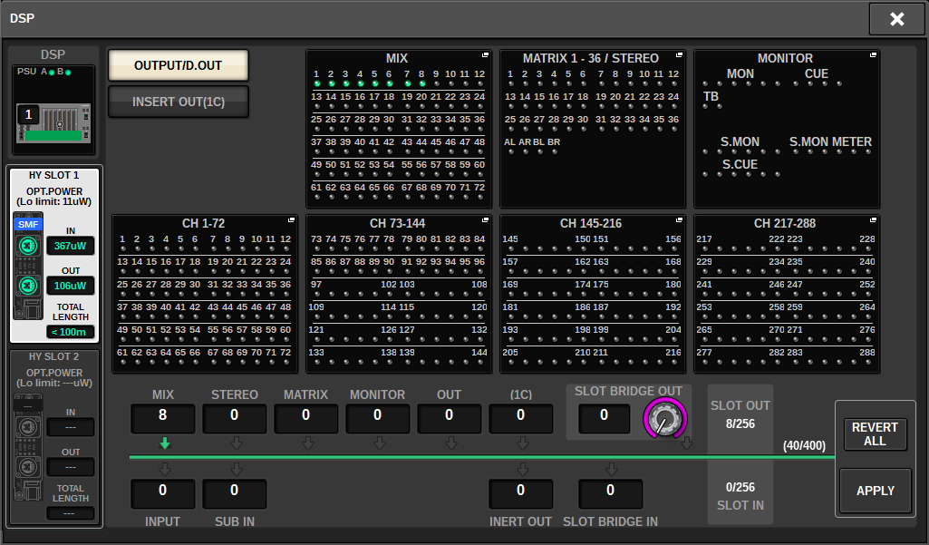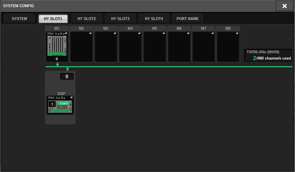 - The setting for the outpout from the DSP engine to the TWINLANe network is applied.