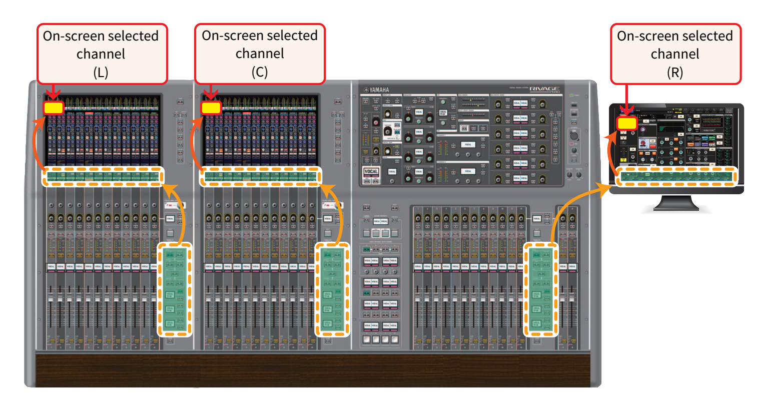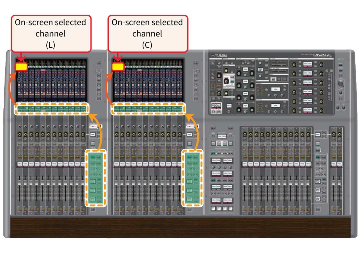 The RIVAGE PM series enables you to select a specific channel to control or for which to display mixing parameters.