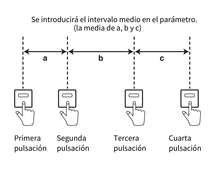 - Se calculará el intervalo medio (BPM) que sigue al pulsar la tecla y ese valor se aplicará al parámetro BPM.