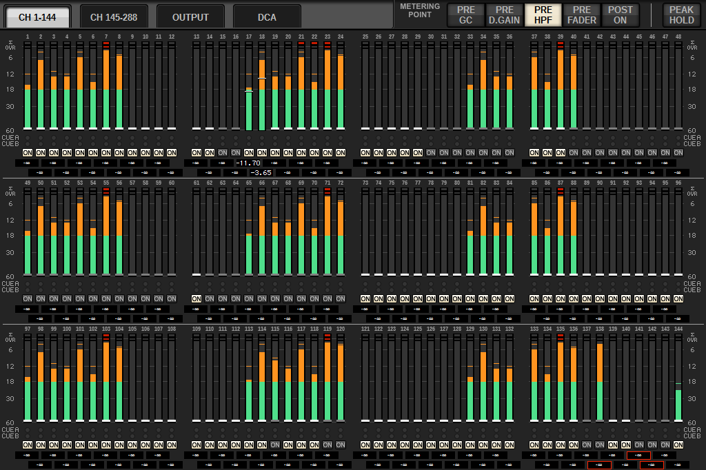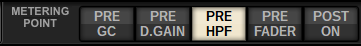 PRE CG è abilitato quando il dispositivo associato nell'ingresso dispone di una GC. Se il canale non dispone di una GC, l'indicatore mostrerà il valore PRE D.GAIN nel punto di misurazione PRE GC.