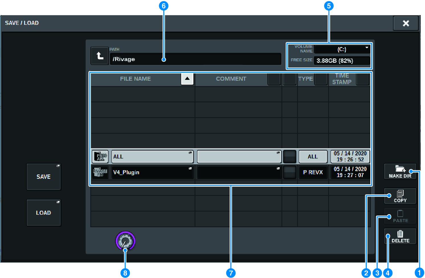 SAVE/LOADポップアップ画面