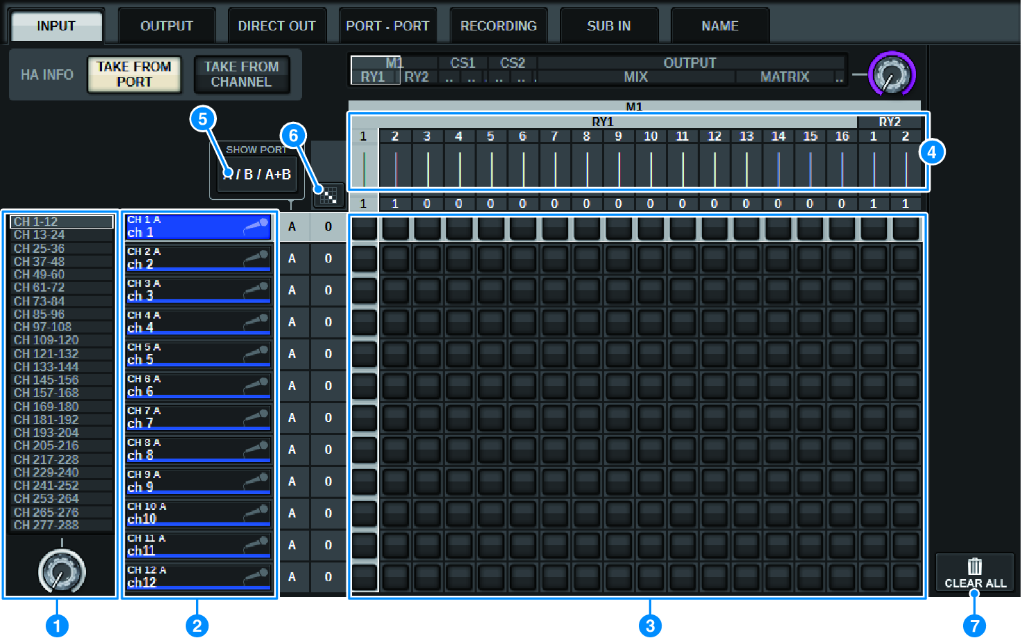 e | SHOW PORTボタン グリッドに表示するポートをA、B、A+Bで切り替えます。 |