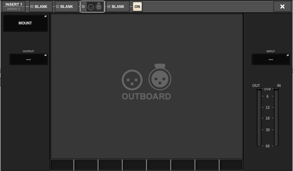 外部機器(Comp, EQ等)を、RPio経由でチャンネルにインサートできます。対応しているインサートはチャンネル1-36のINSERT 1Cのみです。
