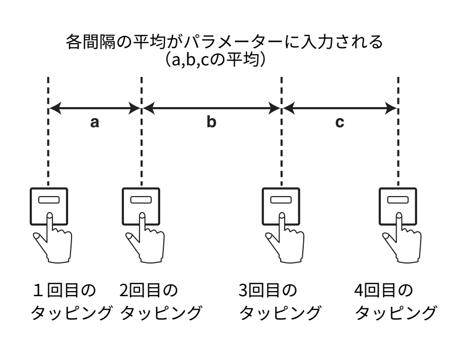 - キーを押した間隔の平均値(BPM)が算出され、その値がBPMパラメーターに反映されます。