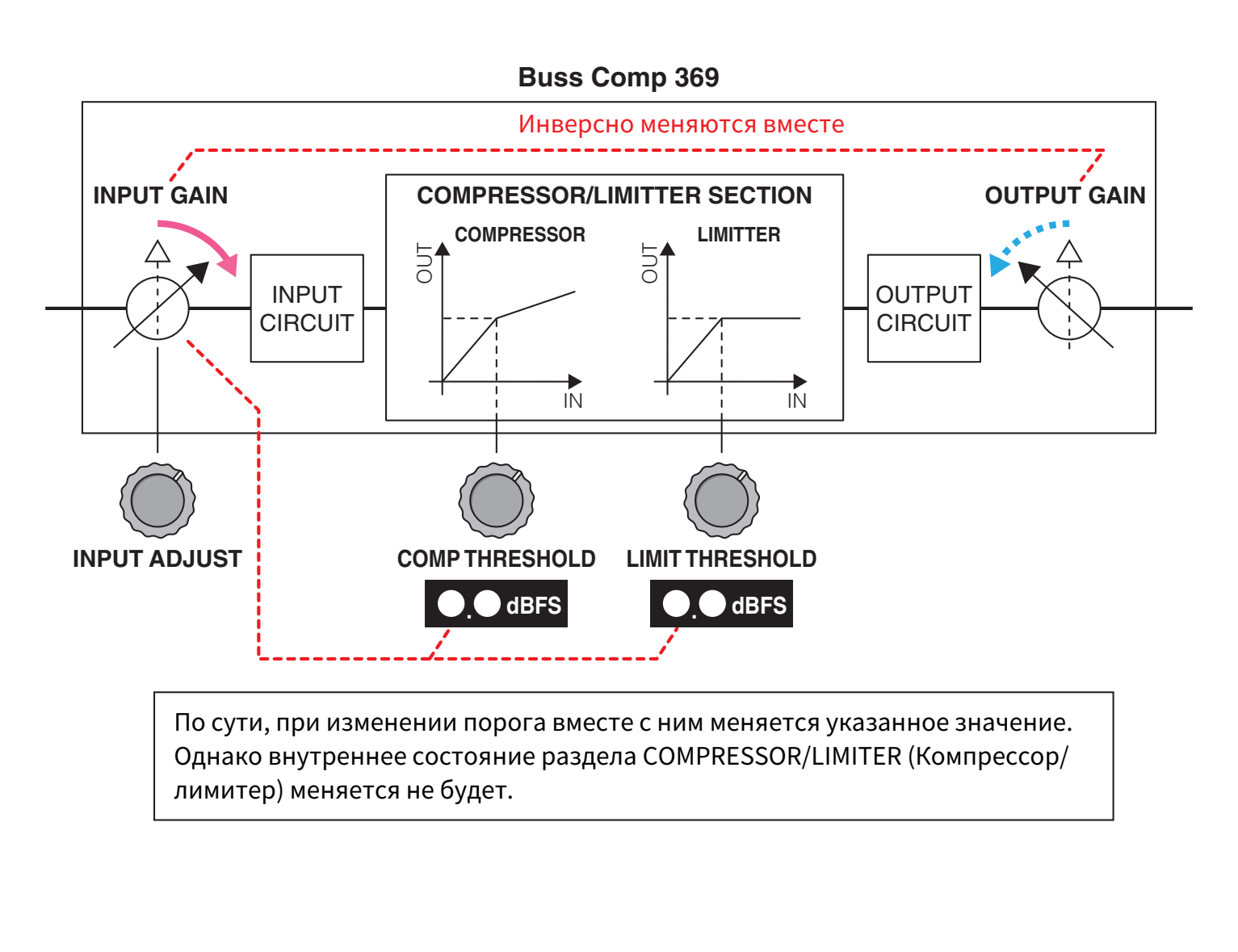 По сути, при изменении порога вместе с ним меняется указанное значение. Однако внутреннее состояние раздела COMPRESSOR/LIMITER (Компрессор/лимитер) меняться не будет. |