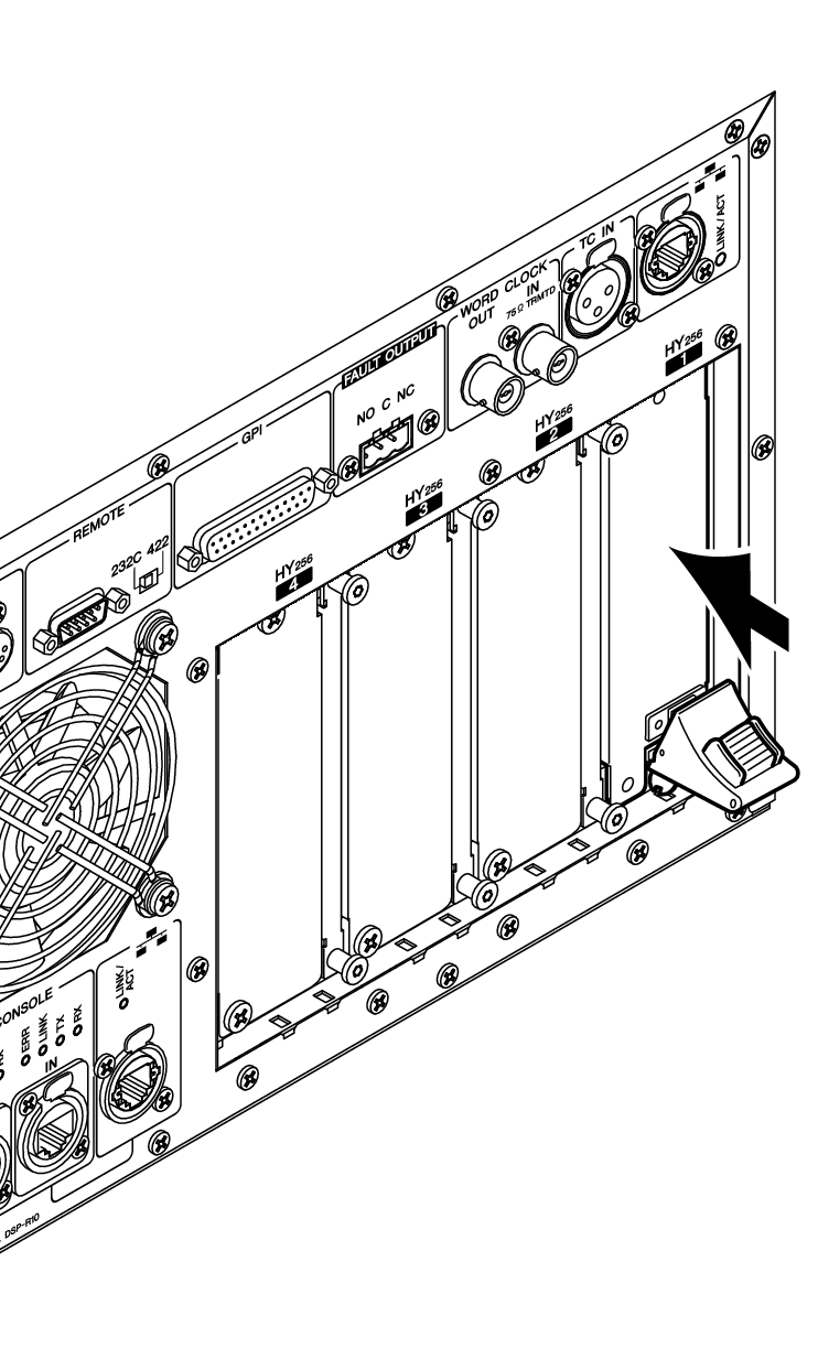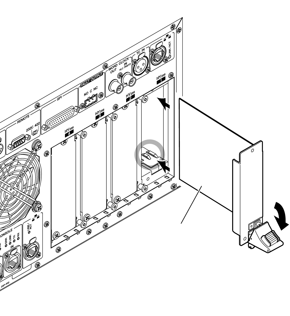 - 把HY卡的两边与插槽内的导轨对齐,然后在压下卡安装杆时将其插入插槽。