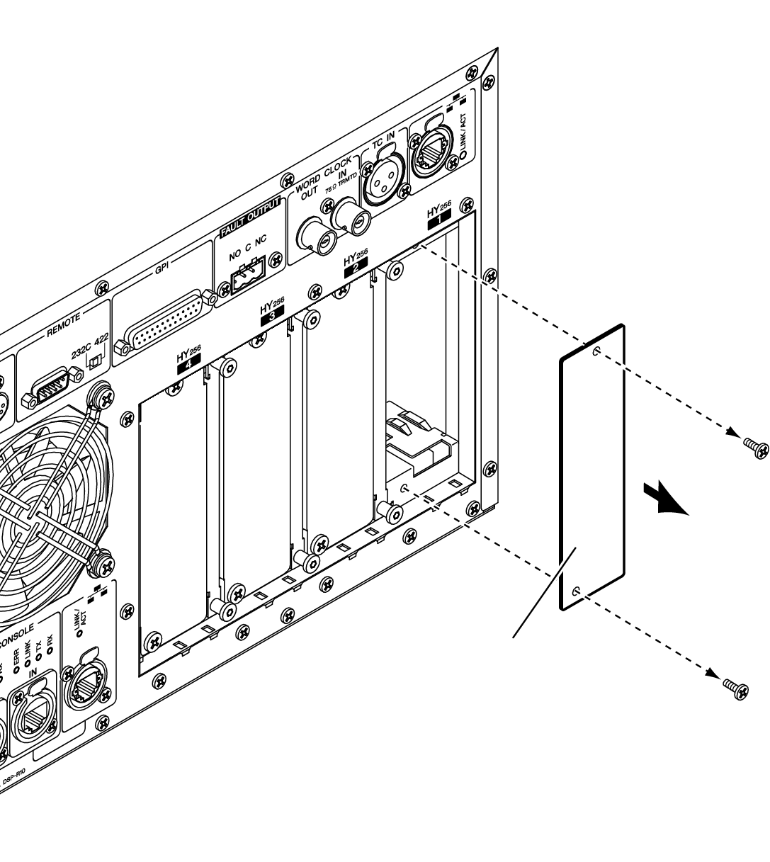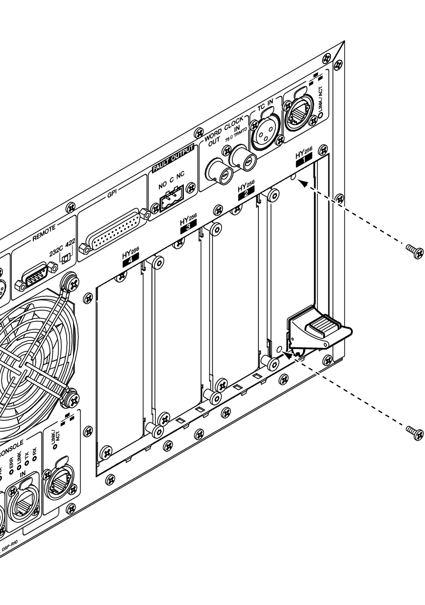 将麦克风/线路输入卡(RY16-ML-SILK)安装到I/O机架的RY卡插槽1。将模拟输出卡(RY16-DA)安装到I/O机架的RY卡插槽2。