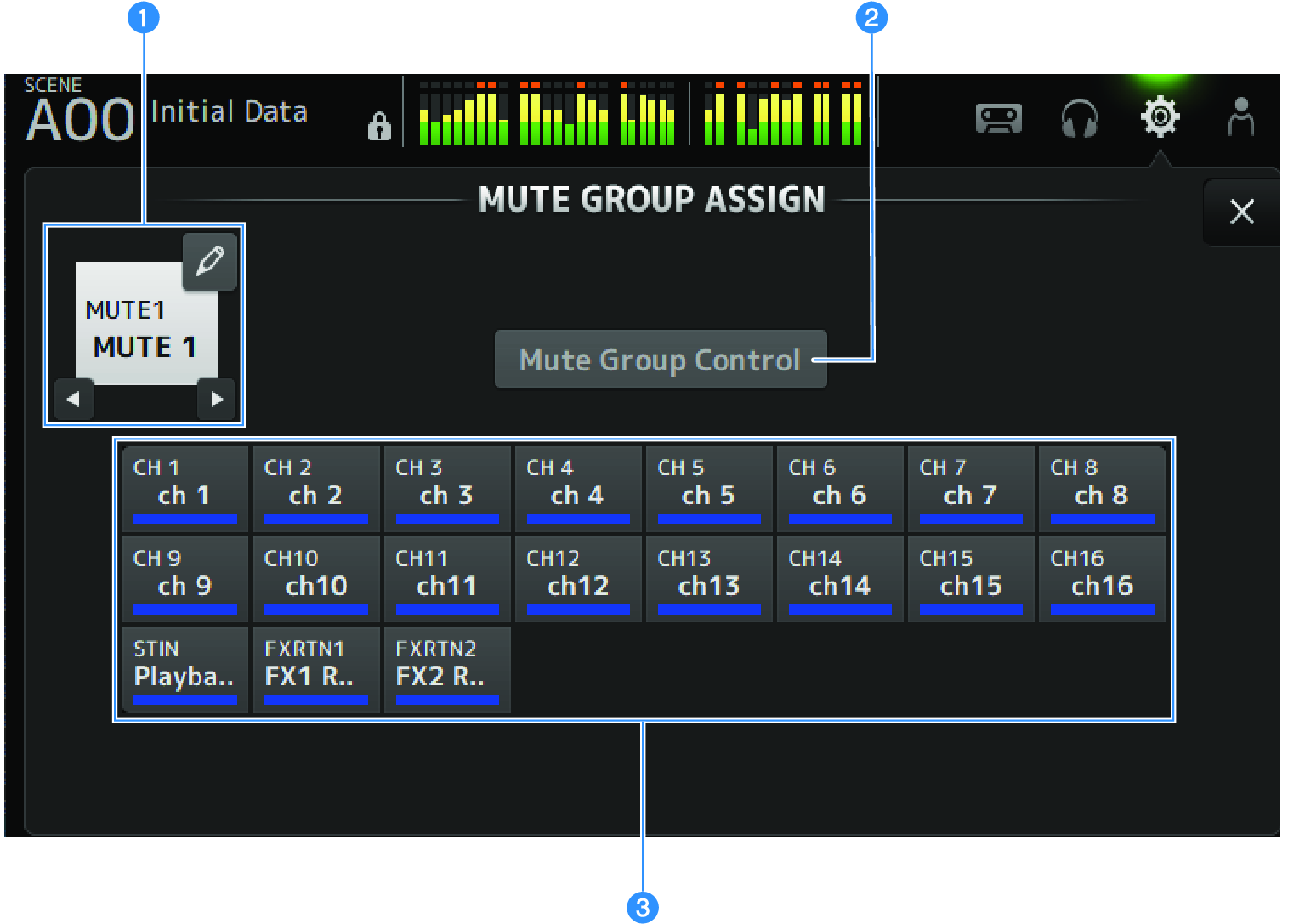 c | Channel selection buttons Select the input channels that will be assigned to the mute group. |