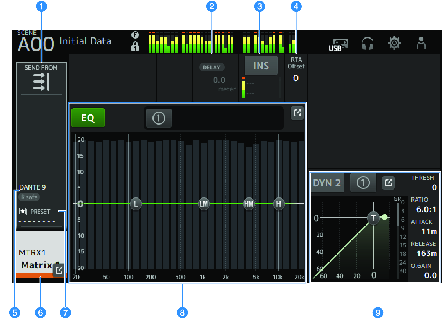 d | Sets the RTA Offset. Adjusts the RTA sensitivity. Touch to highlight and then adjust with the [TOUCH AND TURN] knob. |